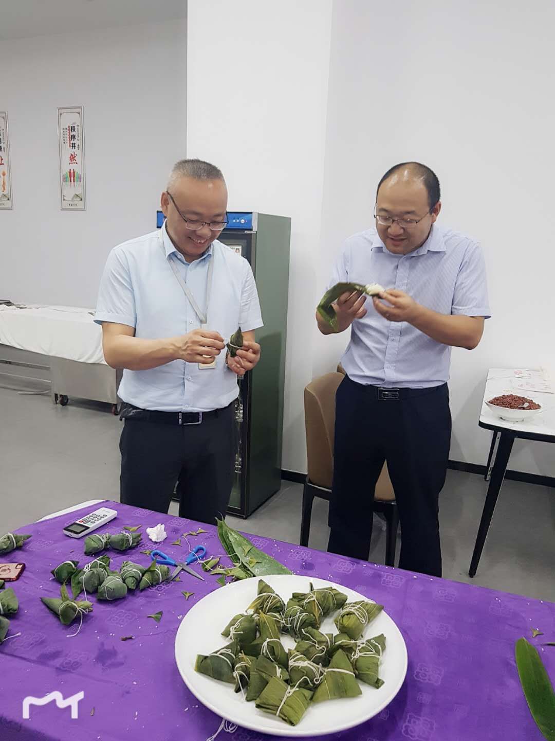 本次活動(dòng)主要是通過組織大家動(dòng)手包粽子,更真切的感受中國傳統(tǒng)節(jié)日的內(nèi)涵與氣氛,了解更多具體的工藝,以輕松的方式進(jìn)一步鍛煉大家的動(dòng)手能力與各部門之間的團(tuán)隊(duì)合作精神,活動(dòng)中,大家齊動(dòng)手,卷粽葉、裝餡料、扎麻繩、綁?mèng)兆?。雖然大家技術(shù)嫻熟程度參差不齊,但大家都特別開心,邊包粽子邊交流,食堂里洋溢著歡聲笑語。在大家的共同配合下,一百多個(gè)形態(tài)各異的粽子出爐了,空氣中散發(fā)著清爽甘醇的氣息,香噴噴的粽子味道飄滿整個(gè)食堂。大家在互幫互助包粽子過程中增進(jìn)了同事之間的感情。同時(shí),讓大家真真切切感受了到節(jié)日的溫馨和公司濃濃的關(guān)愛。