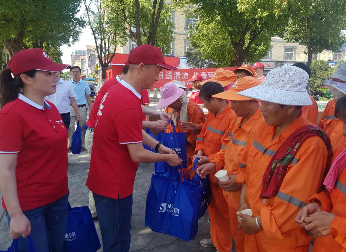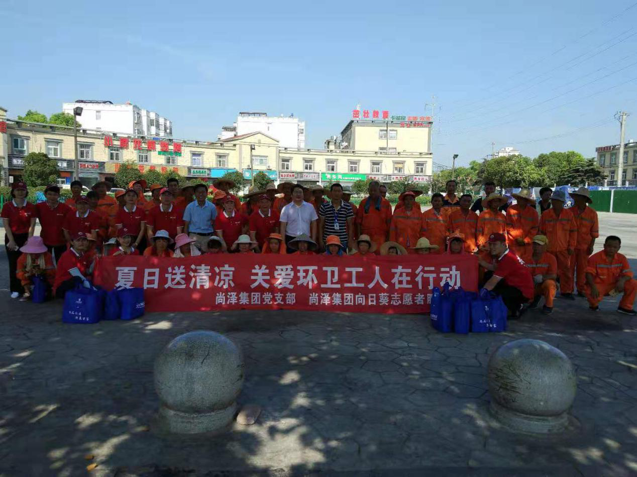 大暑過后高溫來襲,尚澤集團(tuán)黨支部、集團(tuán)向日葵志愿者服務(wù)隊(duì)共同舉辦了“夏日送清涼、關(guān)愛伴我行”慰問環(huán)衛(wèi)工人活動。同時,蓮花社區(qū)黨委副書記劉子飛、丹霞居委會黨總支副書記李長青等領(lǐng)導(dǎo)也參加了此次慰問活動,集團(tuán)黨支部書記戴正春帶領(lǐng)集團(tuán)部分黨員同志與志愿者隊(duì)員,來到丹霞環(huán)衛(wèi)站點(diǎn)慰問一線環(huán)衛(wèi)工人,對環(huán)衛(wèi)工人在酷暑中奮戰(zhàn)、為清潔城市、改善環(huán)境而辛勤地付出致以親切的慰問,告誡集團(tuán)黨員和志愿者服務(wù)隊(duì)員要關(guān)心和尊重環(huán)衛(wèi)工人的勞動成果,共同維護(hù)城市的環(huán)境衛(wèi)生。隨后,社區(qū)領(lǐng)導(dǎo)與大家一起將慰問品親自送到環(huán)衛(wèi)工人的手上,志愿者們也為環(huán)衛(wèi)工人送上解暑的綠豆湯與礦泉水。