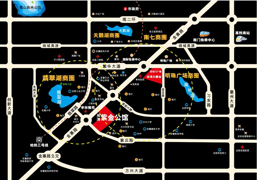 【尚澤紫金公館】位于金寨路與紫云路交口的東北角,屬于經(jīng)開區(qū)的中軸位置,受到翡翠湖和明珠廣場兩大商圈的輻射,同時享受兩大商圈的配套。同時,項目所處地理位置交通便利,便捷交通連接市區(qū)。10分鐘即可抵達高鐵南站,眾多公交路線經(jīng)過,其次項目毗鄰地鐵三號線(在建)紫云路站,立體交通體系暢達全城,商務(wù)會面無憂出行。