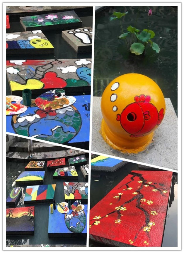 活動開始了,小朋友們拿起畫筆躍躍欲試,在老師的悉心指導下,在家長的從旁協(xié)助下,大家你一筆我一劃,一個個卡通形象躍然石球上。