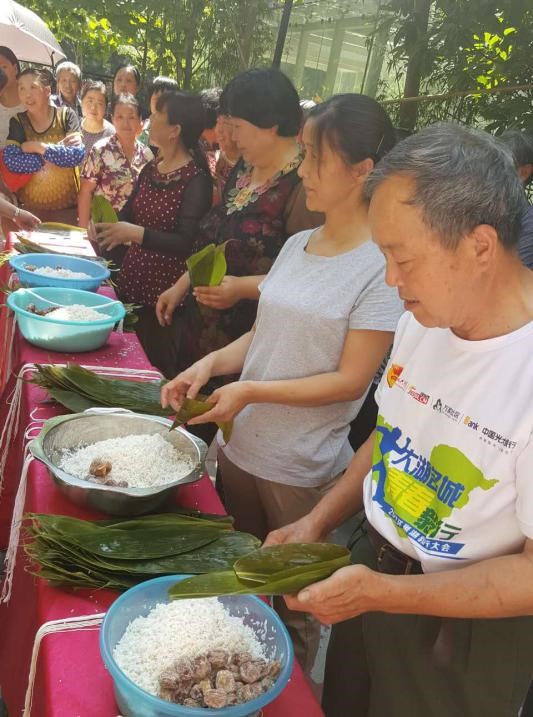 瞧,選手中還有大叔不讓巾幗,粗糙的雙手照樣靈活,嘴巴也不遜色,肯定也是針線(xiàn)活的高手!現(xiàn)場(chǎng)涌現(xiàn)出幾位包粽高手,在規(guī)定的10分鐘內(nèi)包好了19只,更有甚者10分鐘內(nèi)包好了23只,將比賽推進(jìn)白熱化階段。