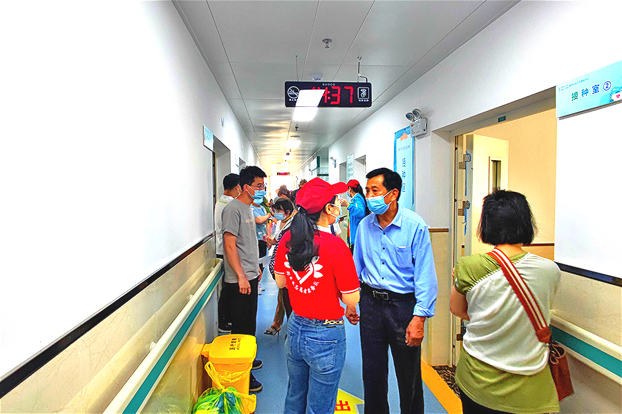 5月18日至30日,集團(tuán)志愿者們穿上統(tǒng)一服裝,戴上口罩,準(zhǔn)時(shí)出現(xiàn)在蓮花社區(qū)衛(wèi)生服務(wù)中心新冠疫苗接種點(diǎn),認(rèn)真做好志愿服務(wù)工作。期間,他們維護(hù)現(xiàn)場秩序,仔細(xì)核對(duì)接種人員信息,協(xié)助社區(qū)工作人員引導(dǎo)群眾進(jìn)行疫苗接種。盡管天氣炎熱,汗水浸透了他們的衣服和口罩,但他們?nèi)粤x無反顧,用實(shí)際行動(dòng)詮釋了志愿服務(wù)者的責(zé)任和擔(dān)當(dāng)。工作中,他們也收獲了現(xiàn)場群眾們暖心地問候:“你們一定保護(hù)好自己,你們辛苦了,為你們點(diǎn)贊……”