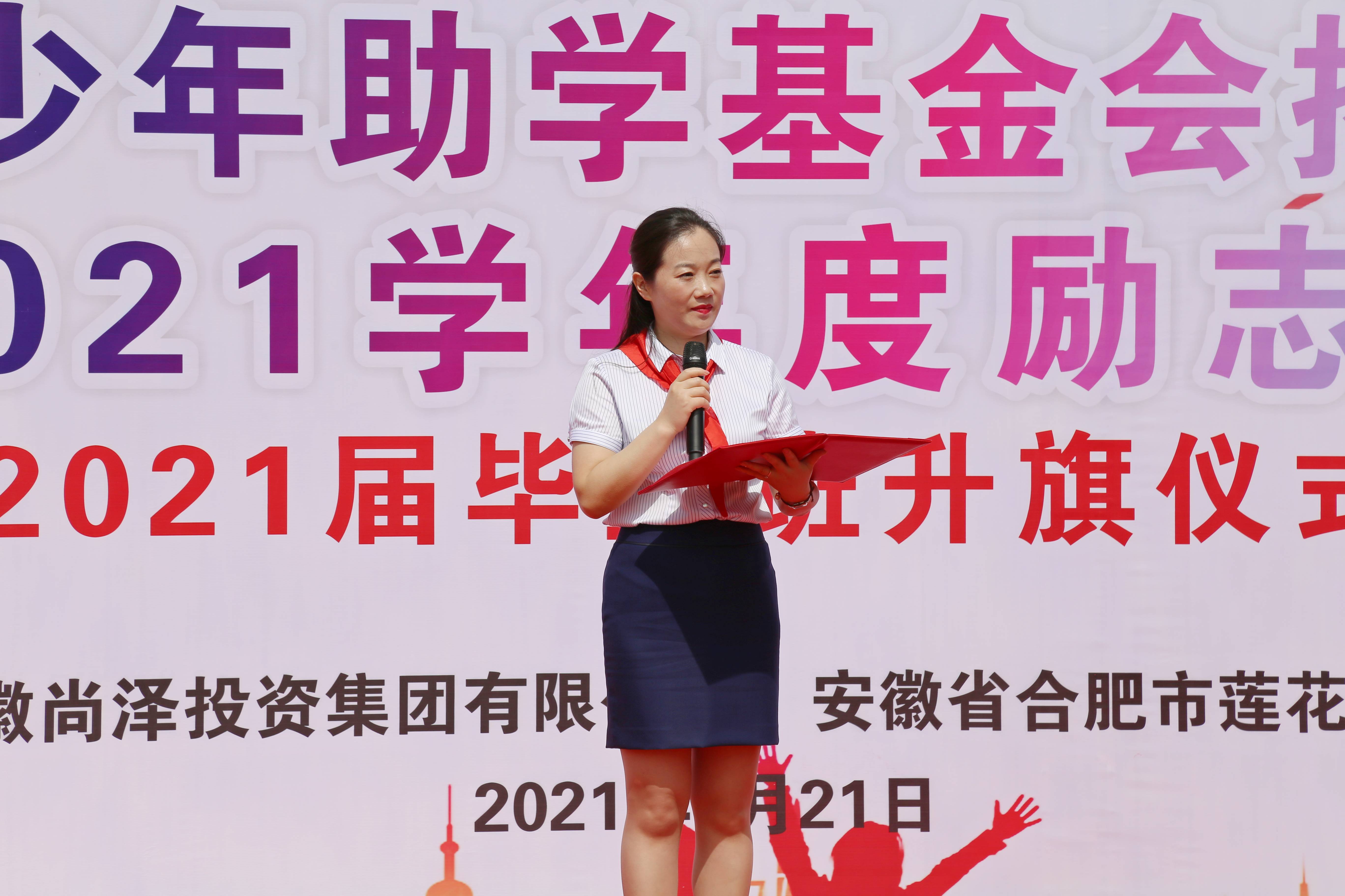 揭牌儀式開始前,蓮花小學(xué)全體師生舉行了2021屆畢業(yè)班升旗儀式,孩子們面向國旗敬禮,注視著國旗冉冉升起,胸前的紅領(lǐng)巾在風中顯得格外鮮艷。隨后在悠揚動聽的校歌聲中,蓮花小學(xué)校長姚賽明月登臺致辭,介紹了尚蓮基金會創(chuàng)建的初衷和使命,感謝尚澤集團投身教育事業(yè),捐資興教的無私奉獻。