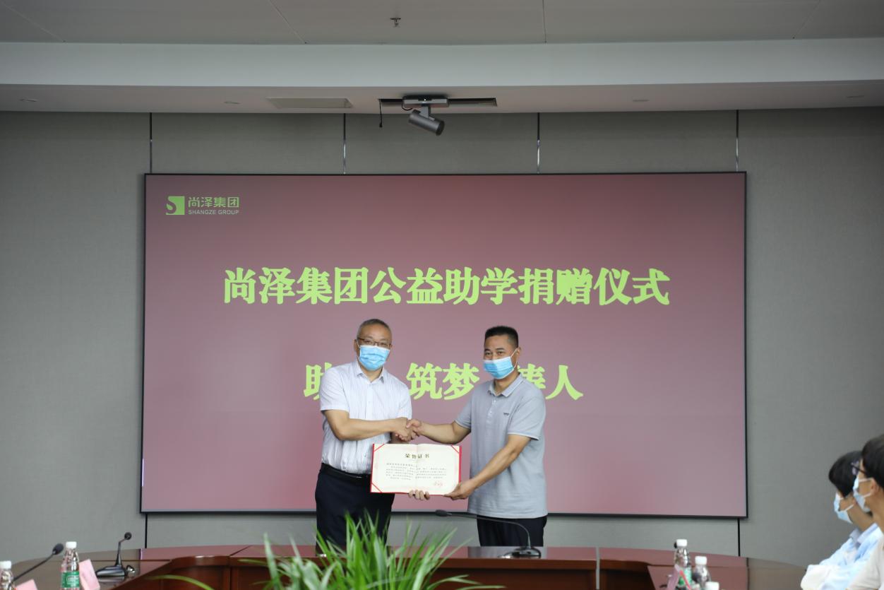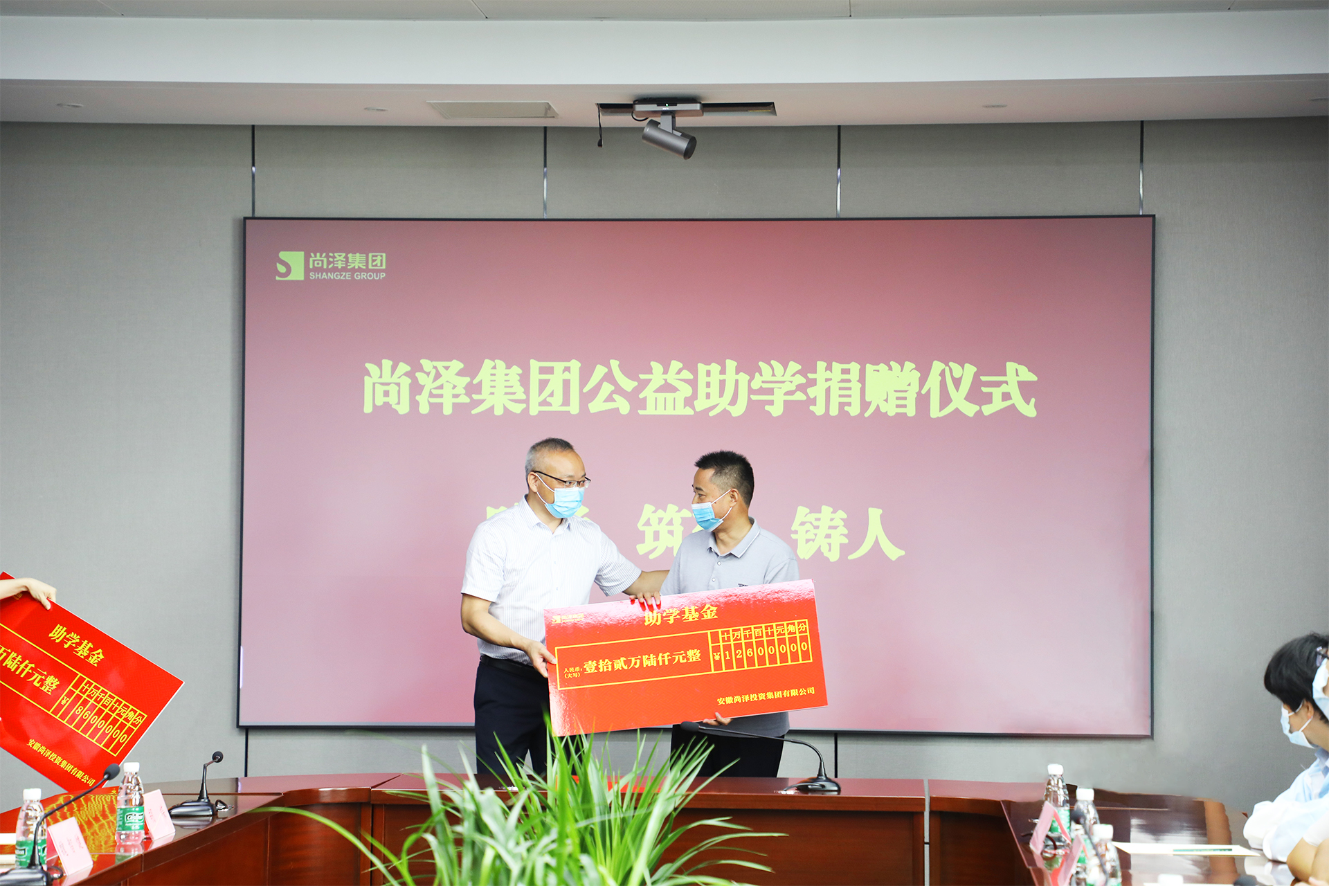 隨后,合肥市民政局及廬江縣民政局向尚澤集團(tuán)總裁王軍頒發(fā)了愛(ài)心企業(yè)榮譽(yù)證書(shū),尚澤集團(tuán)黨支部書(shū)記戴正春和尚澤集團(tuán)副總裁朱世軍為學(xué)生頒發(fā)助學(xué)金。