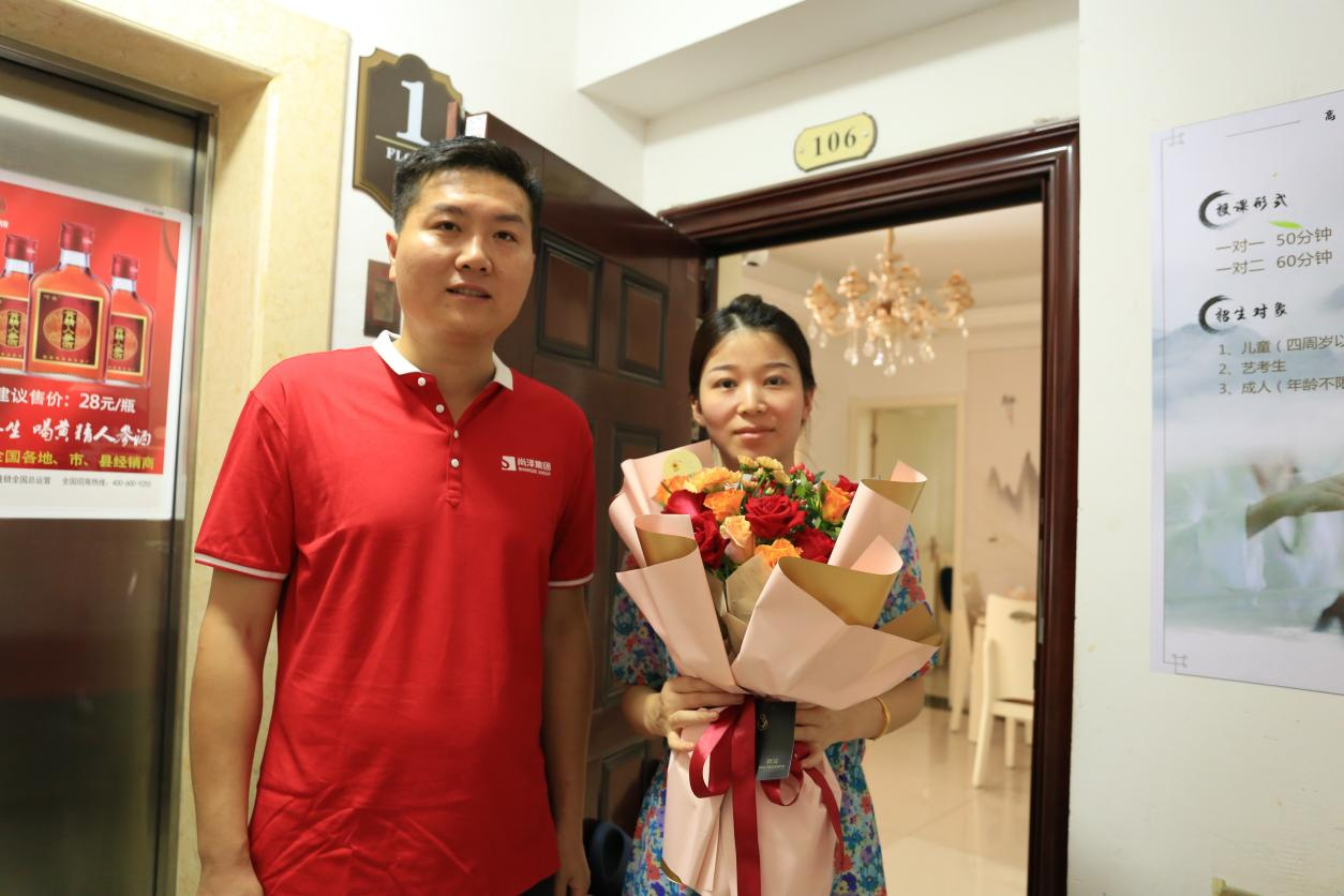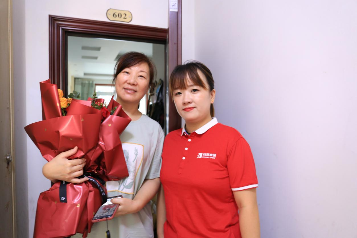 當(dāng)天上午,志愿者們手捧鮮花對(duì)居住在尚澤大都會(huì)、百樂門的教師業(yè)戶們進(jìn)行了入戶走訪,為老師們送上節(jié)日的問候和美好的祝福,感謝他們?yōu)榻逃聵I(yè)發(fā)展做出的貢獻(xiàn)。收到鮮花和祝福的老師們驚喜萬分,也無比感動(dòng)。