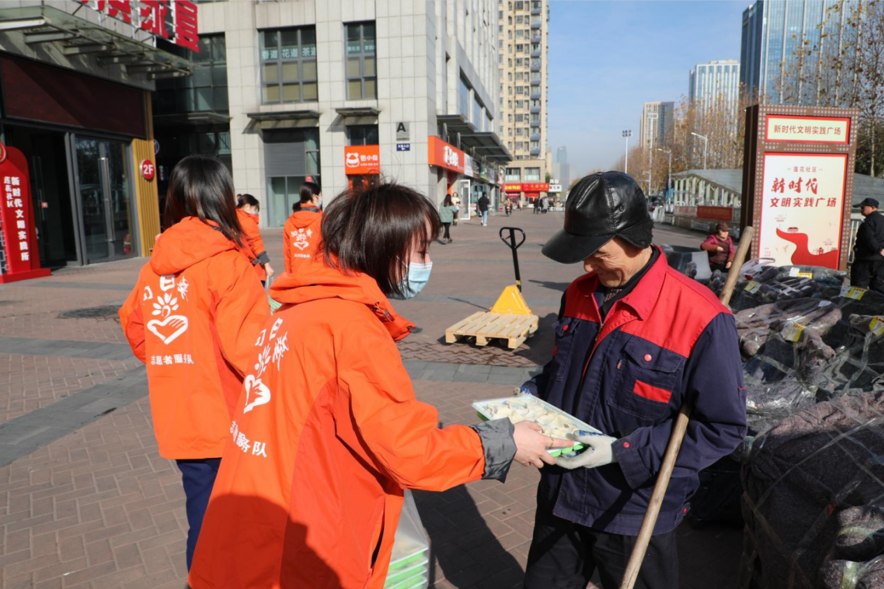 隨后,志愿者們將分裝好的餃子送給執(zhí)勤的保安、保潔、退伍軍人,帶去了集團(tuán)對大家的關(guān)懷與慰問,為他們驅(qū)散冬日寒意。