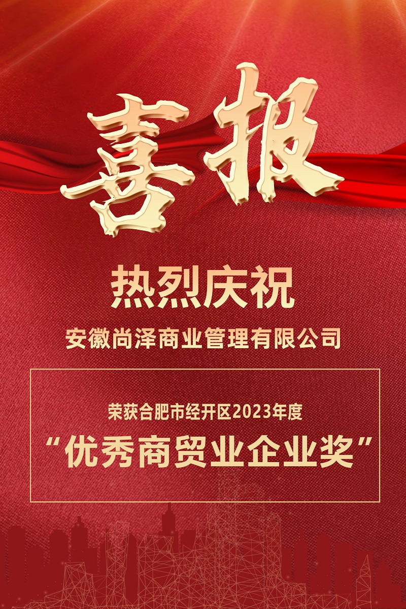 1月30日合肥日報發(fā)布《合肥經(jīng)開區(qū)2023年度優(yōu)秀企業(yè)光榮榜》,尚澤商管榮獲2023年度經(jīng)開區(qū)“優(yōu)秀商貿(mào)業(yè)企業(yè)獎”。