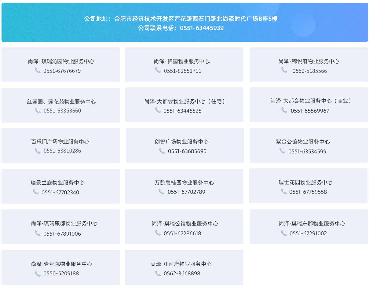 安徽尚澤瑞康物業(yè)服務(wù)有限公司(原合肥瑞康物業(yè)管理有限公司)成立于二〇〇三年四月,隸屬于安徽尚澤投資集團有限公司,是安徽省物業(yè)管理協(xié)會會員單位、合肥市物業(yè)管理協(xié)會常務(wù)理事單位。公司在秉承借鑒先進物業(yè)公司管理模式的基礎(chǔ)上,融匯國內(nèi)先進的物業(yè)管理經(jīng)驗和技術(shù),使公司獲得快速發(fā)展,足跡履及合肥、肥東、滁州、銅陵、宣城等地,服務(wù)物業(yè)類型涵蓋高端住宅、商務(wù)辦公、商業(yè)街區(qū)等,管理總面積約300萬方,多次在合肥市物業(yè)服務(wù)質(zhì)量測評中榮獲佳績。
